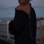 Furry Elbow Turtle Neck Sweater. Can Be Worn With The Zipper To The Back And With The Zipper To The Front.